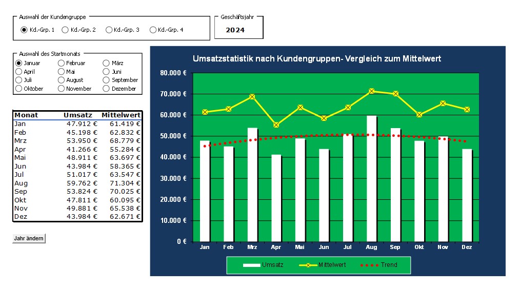 Die Ergebnisse dieser Anfragen werden in einer ausgewählten Tabellenzelle abgelegt und können für weitere Kalkulationen innerhalb von Excel verwendet werden. Der Aufbau Ihrer individuellen Auswertungen wird komplett in Excel festgelegt. Excel bietet Ihnen die Möglichkeit, die Auswertungen komfortabel und individuell zu formatieren oder die Daten grafisch aufzubereiten.